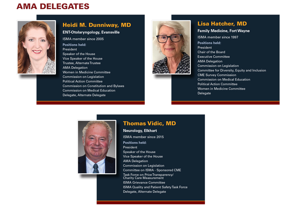 Dr. Hatcher’s election as delegate opened a fourth alternate delegate seat; Monica Wehby, MD, Carmel, was elected to serve the 15 months remaining in Dr. Hatcher’s term.