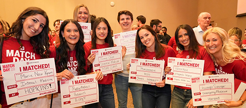 For MU-WCOM, they matched 100% of students for the second consecutive year. All 148 graduates are set to begin training this summer; 37% are staying in Indiana. 57 students entered residency in the immediate surrounding states.