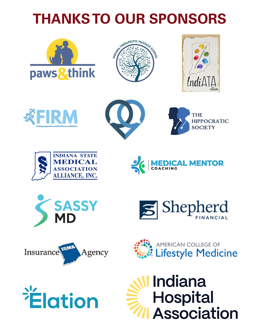 The Indiana Hospital Association is the premier sponsor for the second annual daylong event. ISMAIA will be sponsoring the chair massages by The Spa at ITMS. Shepherd Financial will sponsor the reception, and Elation Health will sponsor the lunch.