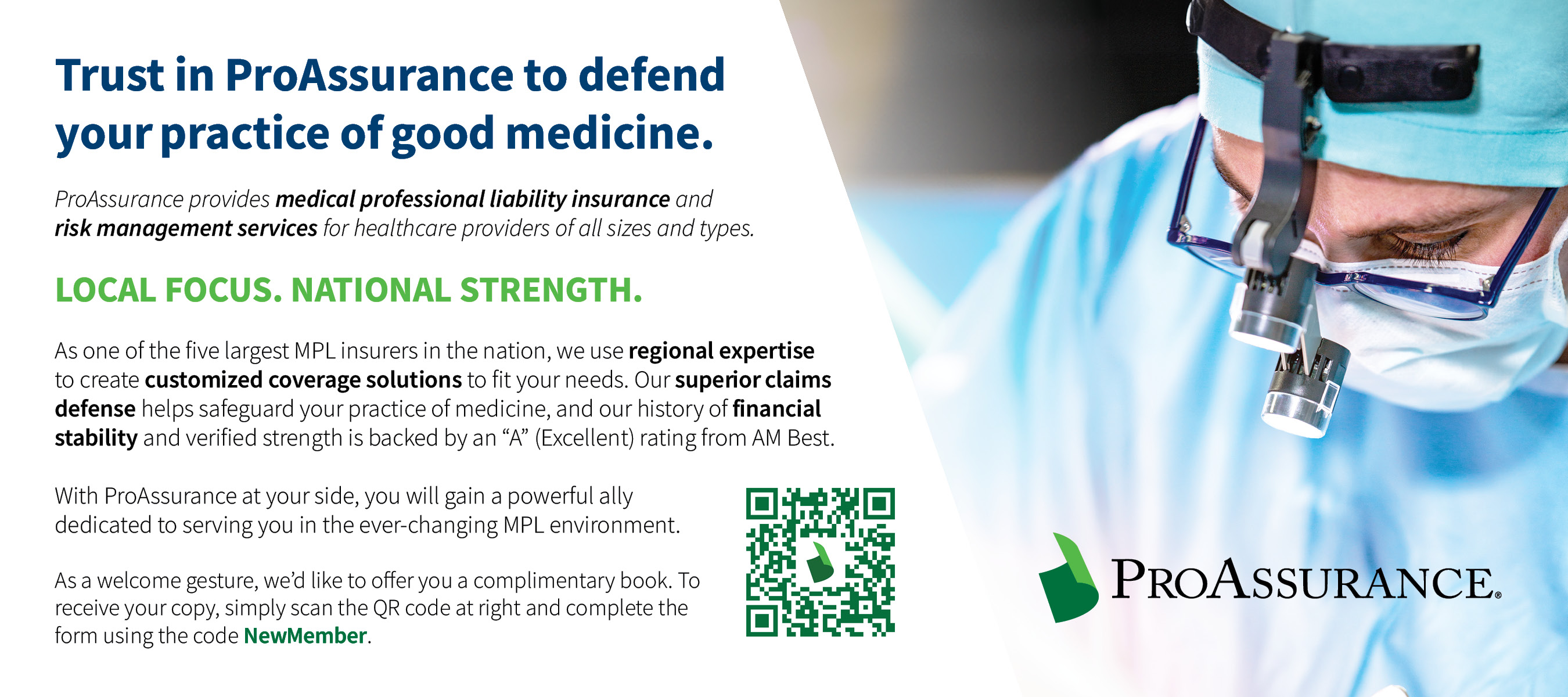 ProAssurance provides medical professional liability (MPL) coverage options and risk management services for healthcare providers of all sizes and types. The ProAssurance MPL division is part of a larger family of specialty insurance companies under ProAssurance Group. ProAssurance Group is rated “A” (Excellent) by AM Best and is among the top five MPL carriers by market share nationwide.