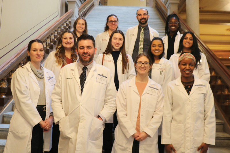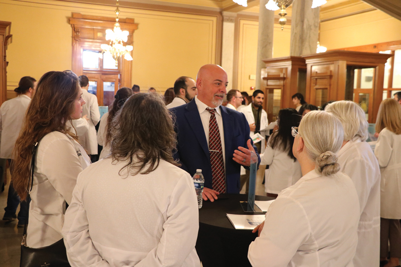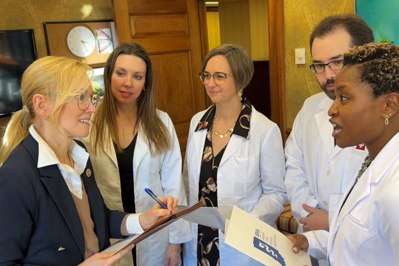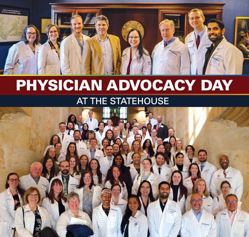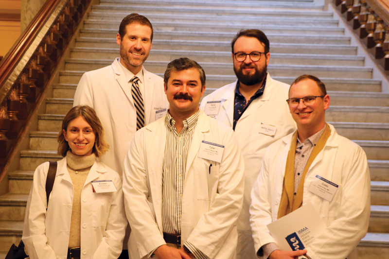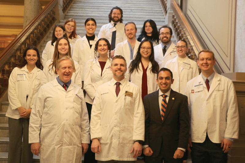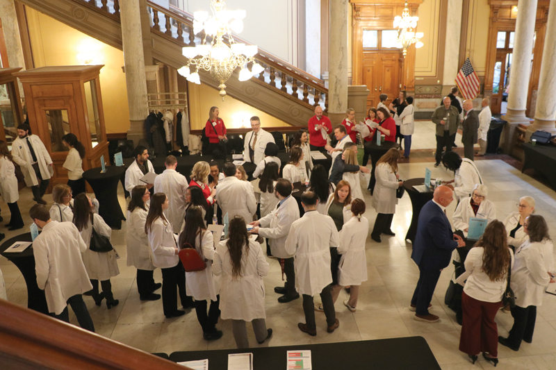 Before heading to the Statehouse, Rep. Brad Barrett, MD, Ryan Singerman, DO, FAAFP, and J. Elizabeth Struble, MD, prepared participants with key talking points and a tracker for the 43 bills ISMA is currently tracking. They encouraged participants to connect with legislators on a personal level and discuss issues that matter.
