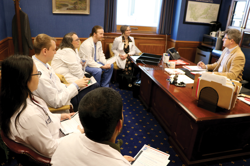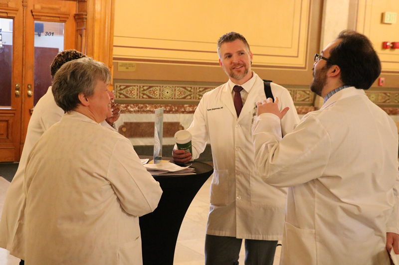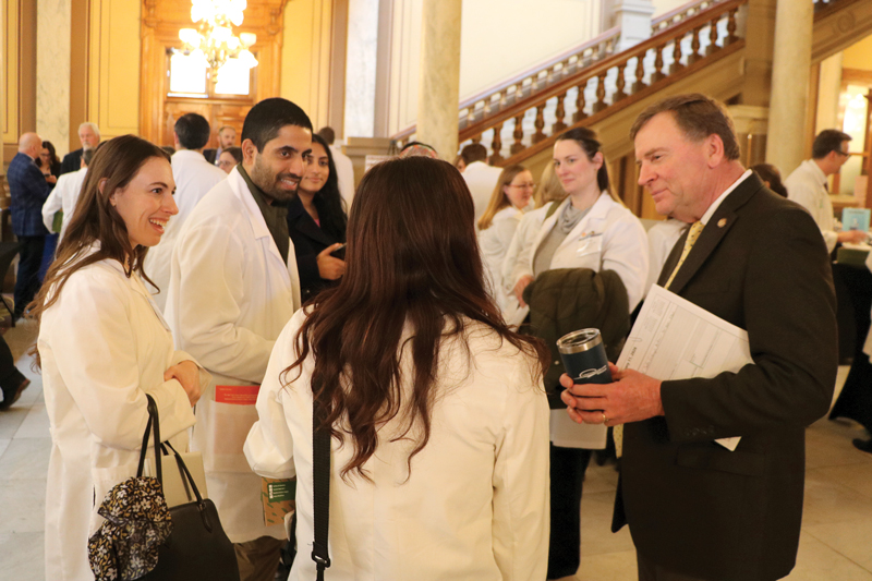 It was a day of meetings. Every registrant was schedule to meet with at least one legislator, and many met with two. In all, physicians and medical students met with 28 legislators. Legislators had lunch with participants, met them in their private office and even took time to meet with them right outside the House Chamber.