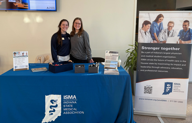 ISMA sponsored more than 100 students from Indiana University School of Medicine and Marian University Tom and Julie Wood College of Osteopathic Medicine (MU-WCOM) who were registered for the 2026 Finding Inspiration and Resilience in Medicine (FIRM) Conference on Friday. Christine Schroedle and Emma Sherma are both MU-WCOM who attended.
