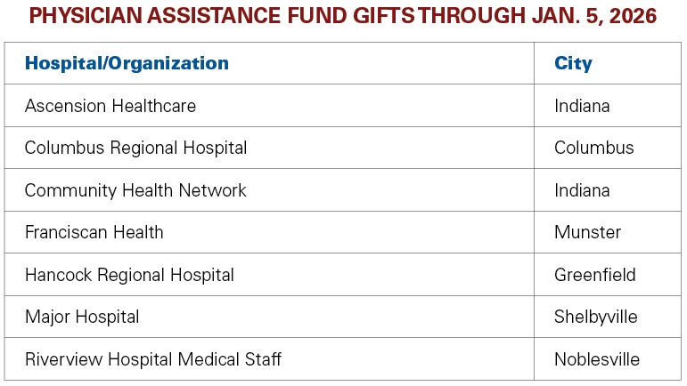 If you would like to donate to the Physician Assistance Fund, call 317-261-2060.