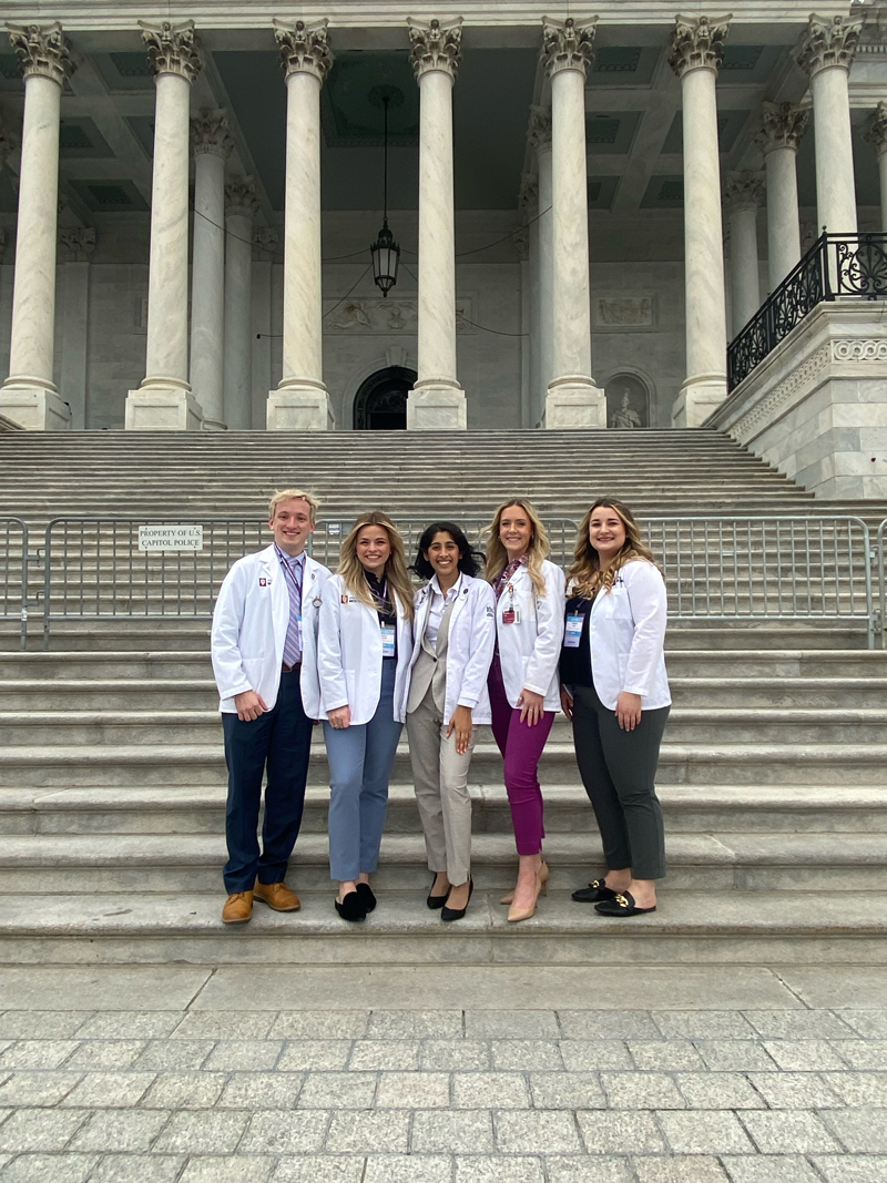 The AMA Medical Student Advocacy Conference is held annually for AMA medical student members to learn how to become stronger public health advocates and to meet with legislators on Capitol Hill. The 2023 conference was held March 2-3 in Washington, D.C. AMA Medical Student Society Region 5 members from Indiana who attended included, from left, Jacob Cantrell, Avery Chadd, Meghna Peesapati, Meg Tharp and Abigail Deal. They are also members of ISMA’s Medical Student Society.